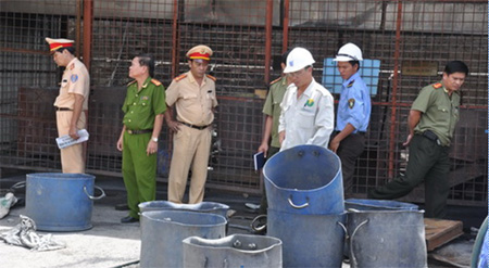 Công an đang tiến hành điều tra hiện trường để thu thập chứng cứ vụ đập phá và lấy quặng vàng tại mỏ vàng Bồng Miêu – Ảnh: Tấn Vũ