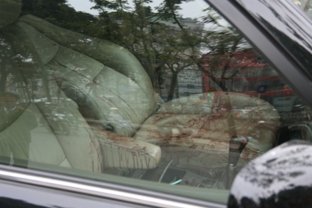 Máu nạn nhân vương khắp xe (Ảnh: Phúc Hưng)