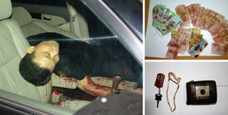 Nạn nhân trong xe ôtô và tiền, đồ vật của nạn nhân còn nguyên sau khi bị sát hại.