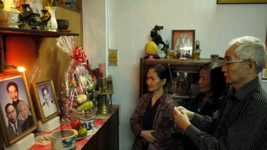 “Mỗi lần tôi đi ra đi vô nhìn lên bàn thờ thấy vui vui tại vì lúc trước nhà bị giải tỏa (phải ở trọ) nên không có bàn thờ để thờ. Mấy anh ở nước ngoài về muốn thắp hương mà không có bàn thờ,” bà nói.