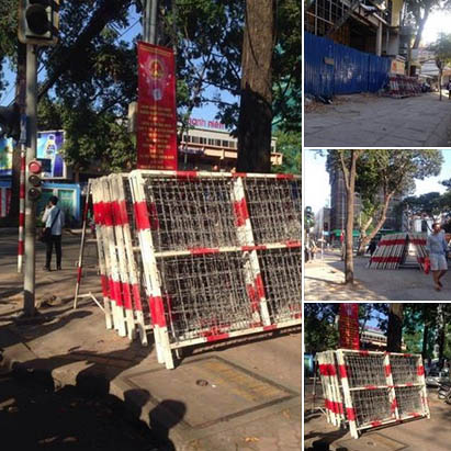 Nhiều nơi, barie, hàng rào kẽm gai cũng được dựng lên tại nhiều ngả đường từ ngày hôm trước, ở cả Sài Gòn cũng như Hà Nội. Đặc biệt các ngã tư Minh Khai, Nguyễn Đình Chiểu, Trần Cao Vân, Điện Biên Phủ, Pasteur, Nhà Hát Lớn và khắp các con phố đi bộ, công an chìm nổi dày đặc.