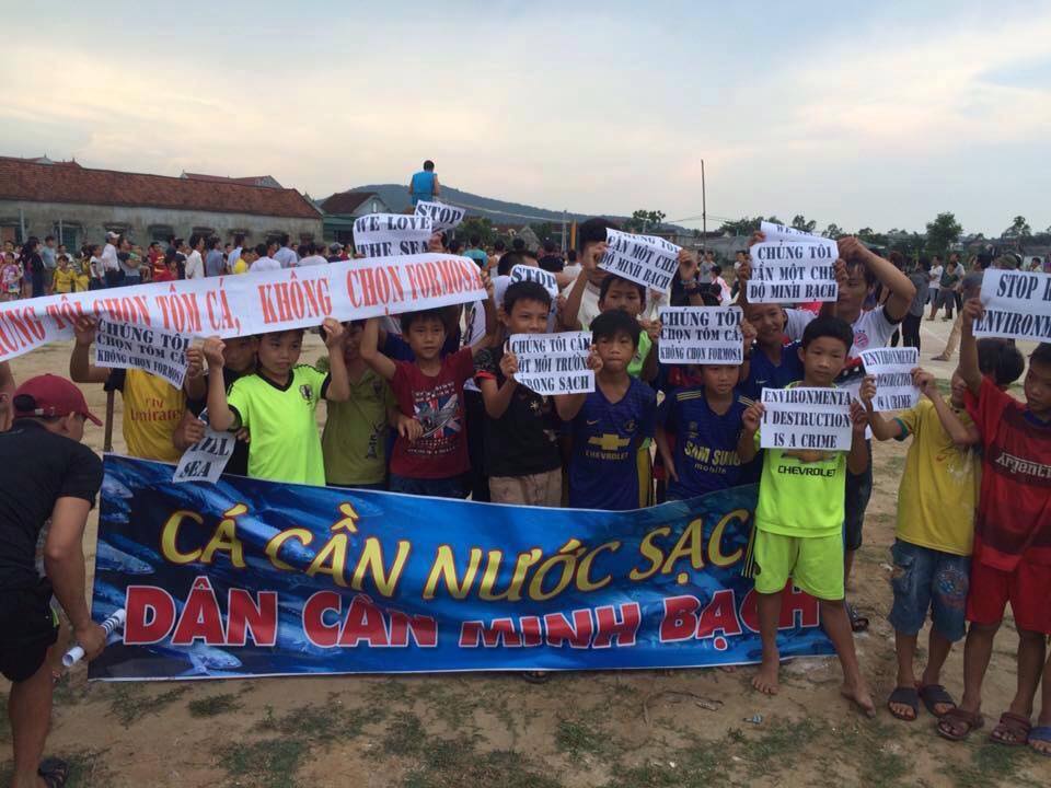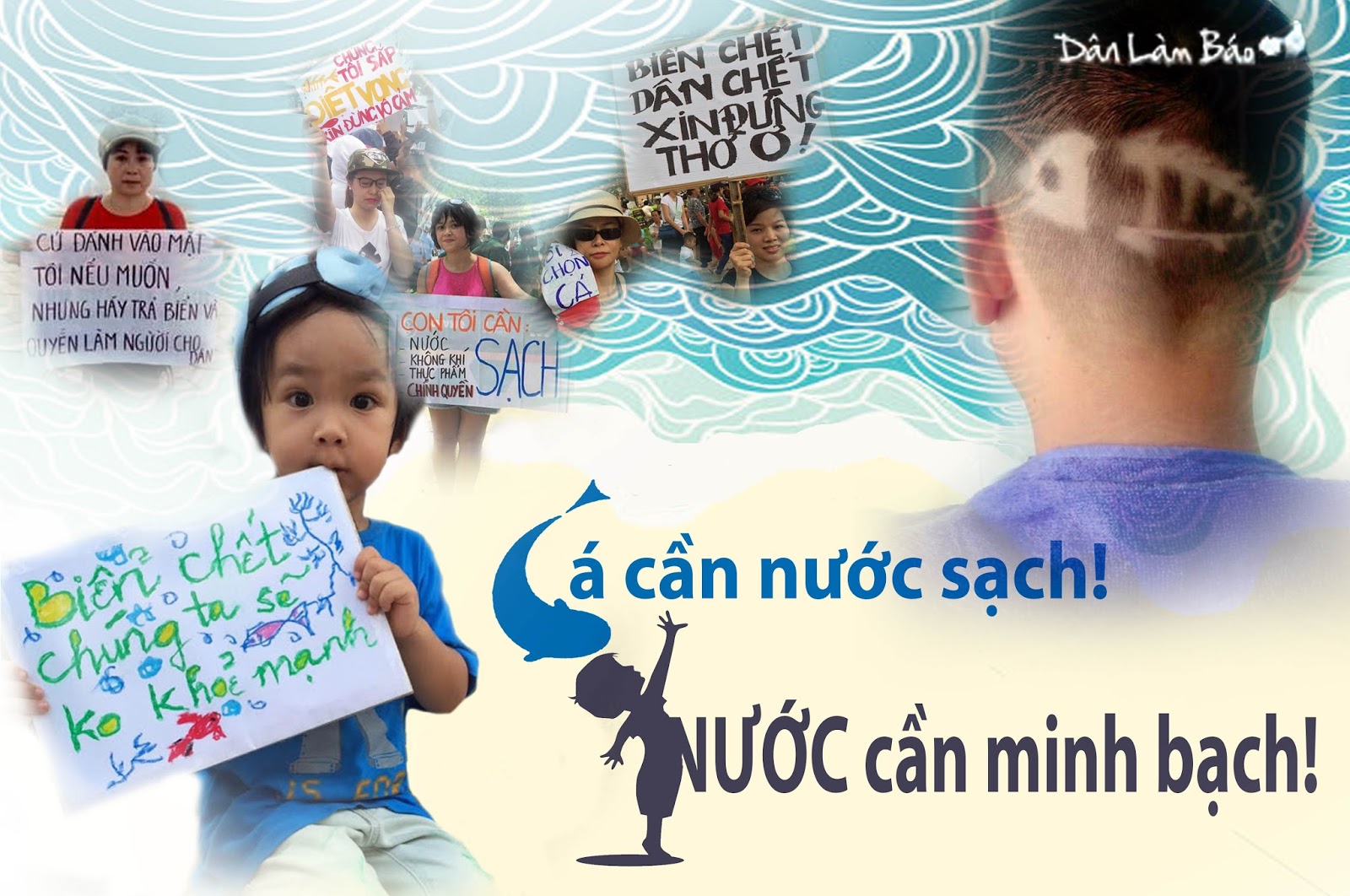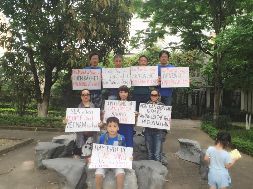 Bà con đã “yêu cầu Chính phủ công khai minh bạch về thông tin nguyên nhân cá chết hàng loạt tại các tỉnh miền Trung… yêu cầu tập đoàn FORMOSA hãy cút khỏi Việt Nam và trả lại biển sạch cho dân”.