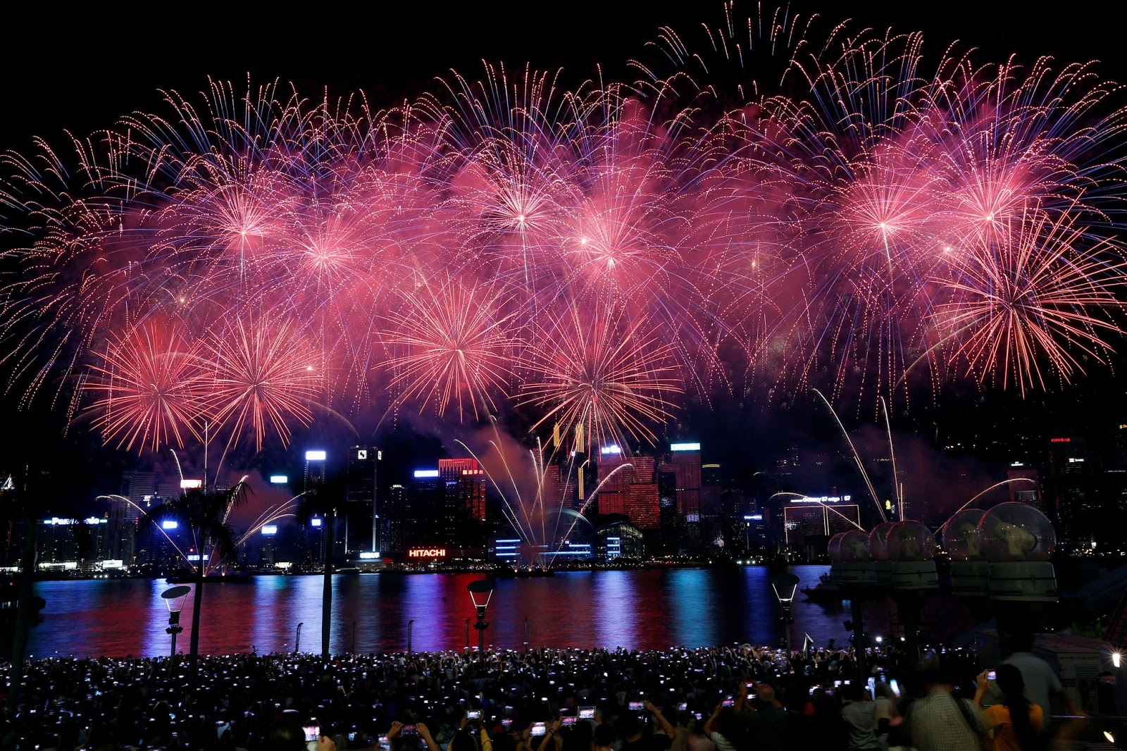 Pháo bông mừng Quốc khánh Trung Quốc tại cảng Victoria, Hồng Kông ngày 01/10/2016.