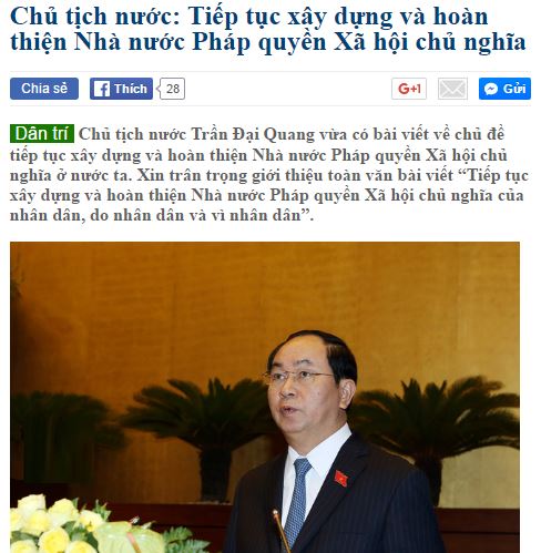 Ngày 09/01/2017, ông Trần Đại Quang đăng đàn bài viết trên Vietnamnet với tít rất kêu: “Hoàn thiện Nhà nước pháp quyền XHCN của dân, do dân và vì dân”.