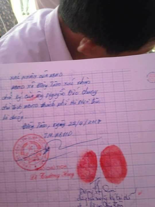 Báo Tuổi trẻ ngày 21.4.2017 cho biết bản tường trình của ông Cảnh, Trưởng ban Tuyên giáo Huyện ủy được dân Đồng Tâm cho ra khỏi nơi bị tạm giữ ghi rõ: “Trong thời gian ở tại xã, tôi cùng anh em được người dân đối xử tử tế, chăm lo đầy đủ, thay quần áo, tắm rửa, không bị đánh dập, không bị lăng mạ… Đến hôm nay do điều kiện sức khỏe, tôi được nhân dân quan tâm chăm lo cho về dưỡng bệnh. Tôi xin chân thành cảm ơn nhân dân. Tôi xin cam đoan những lời trình bày trên đây là đúng sự thật.”