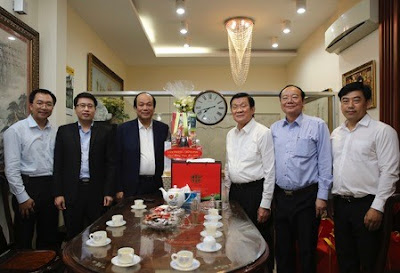 Và trong số đó chỉ Dân Việt của Hội NDVN là rút cái tít giành cho đồng chí X trang trọng thế này trong khi ngài Bộ trưởng thăm cả nguyên Chủ tịch nước Trương Tấn Sang, Nguyễn Minh Triết.