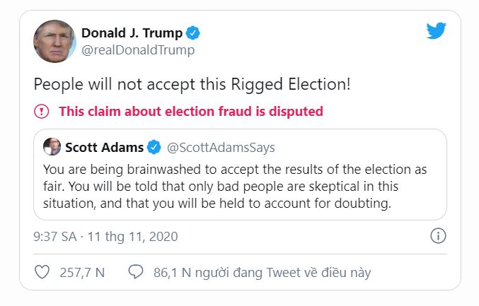 Thay vào đó, ông đang đưa ra những cáo buộc không có chứng cớ về việc cử tri gian lận trên diện rộng, mà theo ông là nghiêng về Biden.