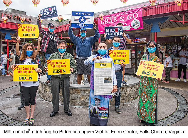 Theo cuộc thăm dò dư luật của AAPI Civic Engagement Fund (AAPI-CEF), trong cuộc bầu cử Tổng thống Hoa Kỳ vừa qua, 61% người Việt đã bầu cho Biden và 36% bầu cho Trump so với người Mỹ gốc Á Châu nói chung là 68% – 30%. Tỉ lệ của người Việt rất khích lệ nhưng vẫn còn thấp nhất so với những khối dân gốc Á khác. Nhóm người gốc Trung Quốc bỏ phiếu cho Biden cao nhất với tỉ lệ 72%, tiếp theo là người gốc Hàn Quốc với 71% và người gốc Ấn Độ là 70%. Tỉ lệ người gốc Ấn Độ ủng hộ Đảng Dân chủ lâu nay vẫn cao. Dù Bà Kamala Harris, ứng cử viên phó Tổng thống trong liên danh với ông Biden, tỉ lệ này không thay đổi.