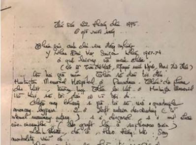 Đó là những dòng chữ trên trang đầu của 8 trang thư viết tay của Thầy từ lúc 6 giờ rưỡi sáng ngày 22/09/1995 chỉ vài giờ trước khi lên bàn mổ. Tám trang thư ấy, nửa như một tâm thư, nửa như một di chúc gửi các Anh Chị Em đồng nghiệp Y Khoa Đại Học Sài Gòn, đặc biệt với khoá 1967 – 1974 ở quê hương và năm châu. Thầy viết tiếp: