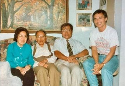 Hình 10 A: Một tuần sau mổ, ngày 28/09/1995, Phạm Xuân Cầu YKSG 74 từ Irvine chở Võ Văn Thành YKSG 74 mới từ Sài Gòn qua, đến thăm Thầy Cô ở Alhambra, bên trái Thầy là Võ Văn Thành và Phạm Xuân Cầu. Thầy Cô đã đãi 2 trò bữa ăn rất thịnh soạn tại một tiệm ăn Tàu ở Monterey Park và không cho phép 2 học trò được trả tiền. [tư liệu và ghi chú của Phạm Xuân Cầu]