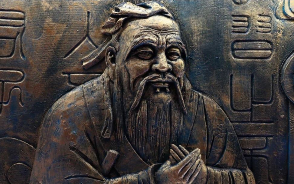 Bức chạm đồng Khổng Tử tại Bắc Kinh. Ảnh: China File.